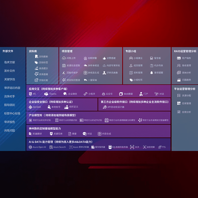 医疗器械产品上市前,,要熟悉严格与繁复评审标准,,,,整理分析监管机构指导文件中的海量信息。。。企业急需一个智能化解决方案,,,提升知识管理效率,,,,提高评审通过率,,,,以提升其市场竞争力。。。