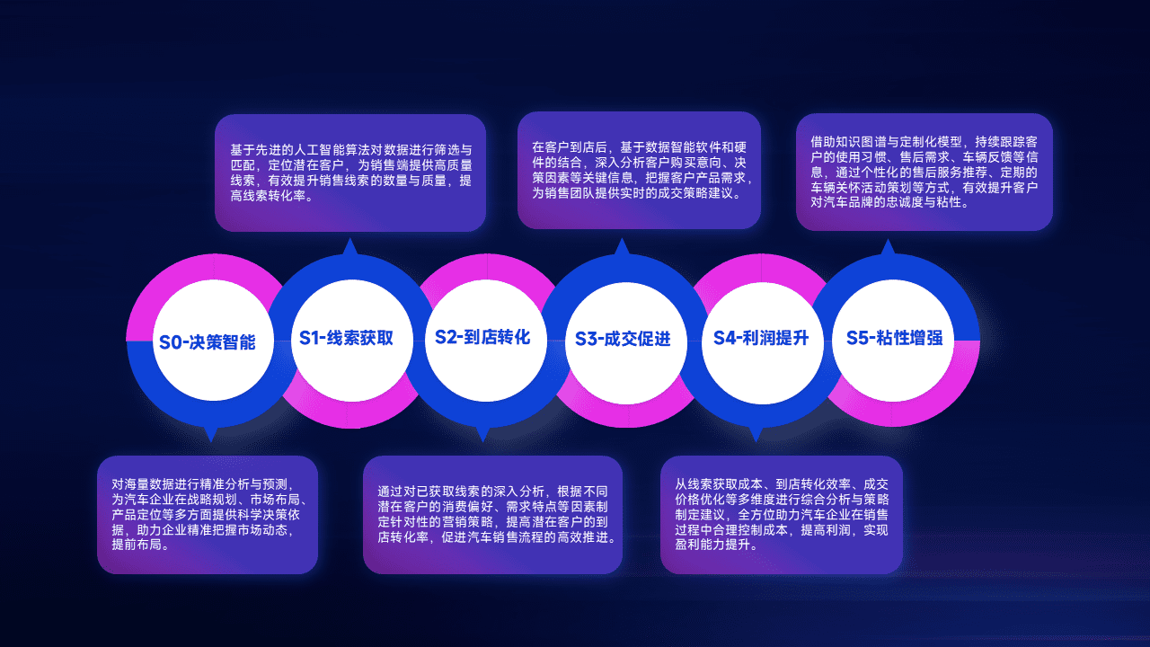 通过拓宽潜在客户来源、、、、优化线索分配并提高到店转化率,,,,以增强销售效率。。。。同时,,,,利用线索数据不断优化分析模型,,,有效提升转化率,,,,扩大营销影响力。。。